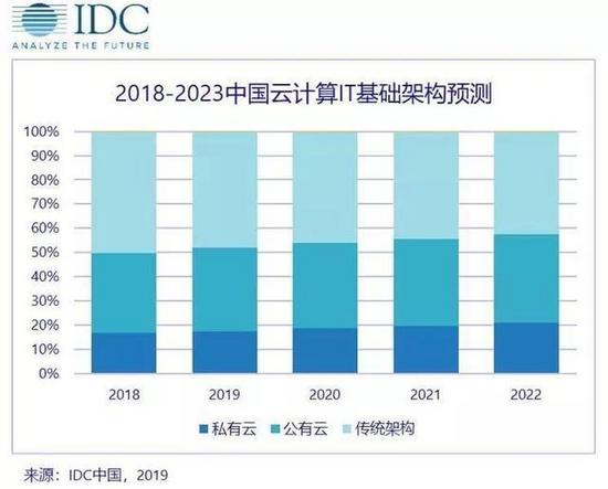 其次,公有云持续迅猛发展,逐步成为企业IT基础设施的主要提供者。2018年Q3云硬件支出占IT总收入的50.9%。2018年中国私有云基础架构支出38.0亿美元,公有云基础架构支出达到82亿美元(来源:IDC)。因此,公有云已经成为IT基础设施的最主要提供者。尤其对于中小企业而言,其IT基础设施可能完全构建在公有云之上。同时,一些处于技术领先行业的大型企业,例如互联网,金融,制造等,也已经开始使用公有云,探索结合公有云和私有云优势的混合云架构。