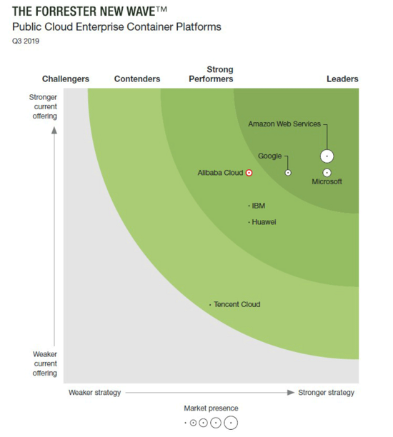 近日,全球知名市场调研机构Forrester发布首个企业级公共云容器平台报告。其中,阿里云容器服务的市场表现全球前三、中国第一,同时创造中国企业最好成绩,进入强劲表现者象限。