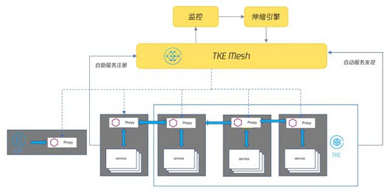 详细来说,为进一步帮助用户使用好容器、挖掘容器的最大价值,腾讯云服务网格产品TKE Mesh充分整合了TKE及腾讯云上负载均衡、云监控等能力,为用户提供了开箱即用的云原生服务网络管控平台。服务网格让用户对访问请求进行灵活控制、对调用链路进行全局展示,对服务质量进行全面监测。非侵入性的服务连接方式将微服务化的门槛降到最低,让开发者更专注于业务价值的实现。