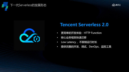 无服务器架构也是腾讯云原生的重点发力领域。腾讯云 上月在Kubecon上发布的Serverless 2.0 ,根据实际的用户使用场景,进一步提供了面向 HTTP 场景的 HTTP Function 和 HTTP Service,不仅更好的支持开发者面向 Web Service 的开发诉求,也可以支持已有业务代码向 Serverless 架构的无缝迁移。此外,腾讯云云函数围绕产品上下游生态,提供了开发者工具、开发管理、运行模型及运维监控等能力,全量支持包括微信小程序等向Serverless架构发展。